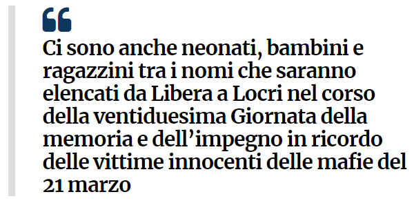 Ho trovato questo link sul sito “linkiesta” cercando -vittime di mafia bambini-.
