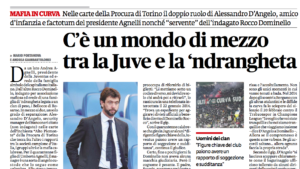 Ho trovato questa immagine mentre navigavo su internet. Parla della ‘ndrangheta in curva juve ed è un articolo di giornale. L’ho scelto perché questo argomento mi incuriosisce molto.